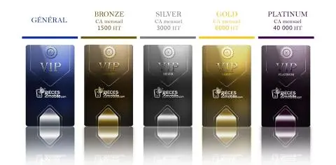 Chez Pieces2Mobile, tous les professionnels sont considérés comme des VIP. Votre statut de VIP évolue en fonction du montant que vous dépensez en achats sur le site Pieces2Mobile. Plus vous réalisez des achats importants sur Pieces2Mobile, plus vous profitez d’avantages en termes de réduction.